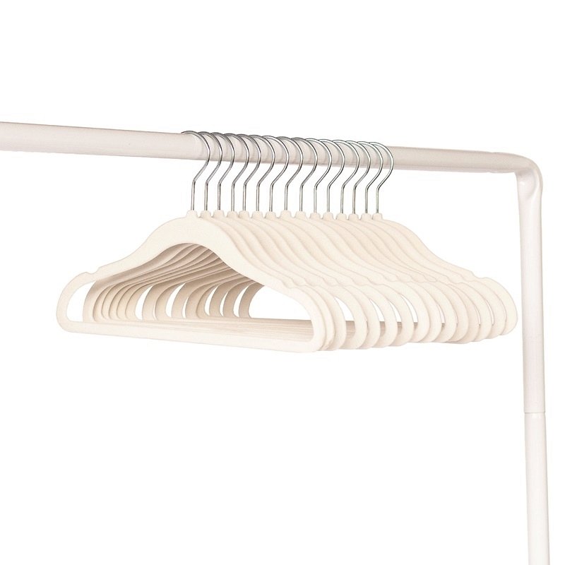 Wieszaki welurowe w rozmiarze dopasowanym do dziecięcych i niemowlęcych ubrań pomogą w utrzymaniu porządku w garderobie. Aksamitne wieszaki są miękkie i przyjemne w dotyku, a ich wykończenie zapobiega zsuwaniu się nawet najmniejszych elementów garderoby. Specjalne wgłębienia umieszczone na bokach wieszaków utrzymują sukienki i ubranka na cienkich ramiączkach na swoim miejscu.