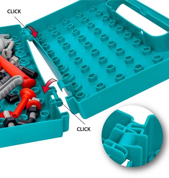 Wbijaj, wkręcaj, skręcaj i dokręcaj za pomocą stołu roboczego BRIO z serii Builder. Ta zabawka konstrukcyjna jest doskonałym wprowadzeniem dla dzieci, które chcą zaznajomić się z zabawą w budowanie i konstruowanie. Elastyczna konstrukcja tego stołu sprawia, że dzieci mogą ćwiczyć posługiwanie się narzędziami, takimi jak młotki, klucze, śrubokręty i inne, w kreatywny i swobodny sposób. A kiedy skończysz się bawić, po prostu złóż twój warsztat i przekształć go w poręczną walizeczkę do przechowywania narzędzi.