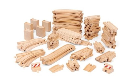 Rozbuduj swoje zestawy kolejowe BRIO World o zestaw torów Deluxe. Ten pakiet rozszerzeń torów kolejowych jest pełen różnych drewnianych elementów i daje dzieciom możliwość budowania wszelkiego rodzaju układów — od podstawowego kołowego po skomplikowane projekty rozciągające się na różnych wysokościach. Użyj kombinacji prostych, łuków, zwrotnic, przystanków, ramp, torów wznoszących i podpór, aby wymyślić własne ścieżki dla pociągów lub po prostu postępuj zgodnie z zawartymi sugestiami dotyczącymi układu.