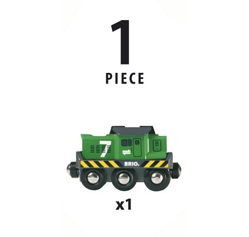 Żaden wagon towarowy nie będzie zbyt dużym wyzwaniem dla napędzanej na baterię lokomotywy towarowej BRIO. Po prostu użyj znajdującego się na dachu zabawki przełącznika, by lokomotywa pojechała do przodu, do tyłu lub stanęła w miejscu. Gdy pociąg porusza się do przodu z dużą prędkością zapalają się reflektory oświetlając mu drogę.