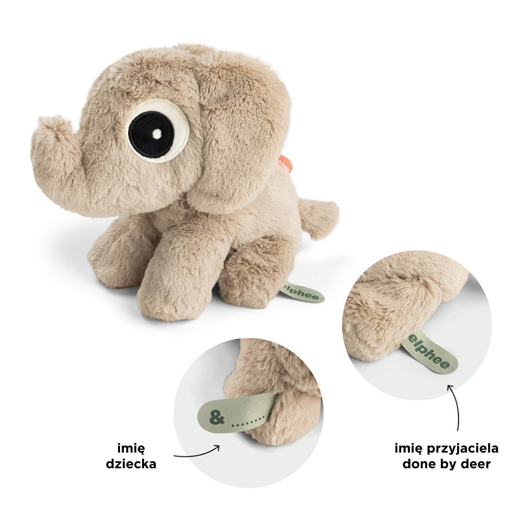 Zaprojektowana z myślą o małych rączkach i wielkich emocjach, przytulanka Elphee jest delikatna, lekka i idealna do tulenia zarówno w domu, jak i poza nim.