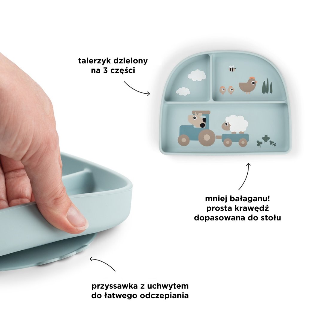 Done by Deer Talerzyk Dzielony z Przyssawką Tiny Farm Blue