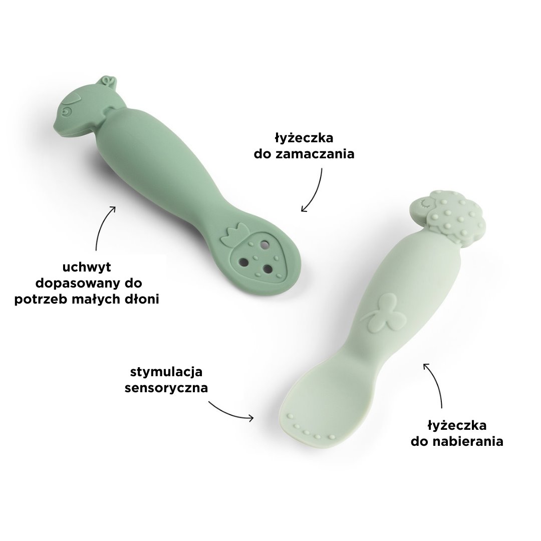 - miękkie łyżeczki idealne do nauki jedzenia we własnym tempie,