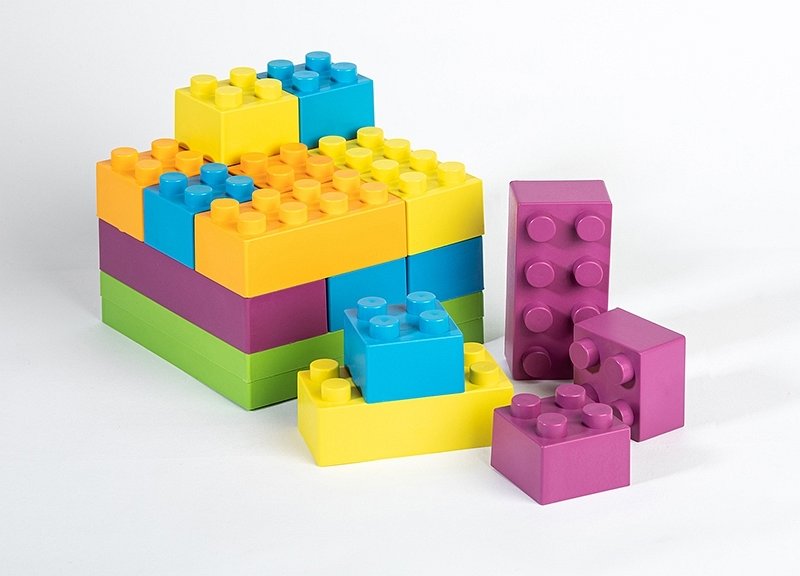 - kolorowe klocki wspomagają naukę kolorów, pobudzają wyobraźnię i są doskonałym treningiem umiejętności motorycznych