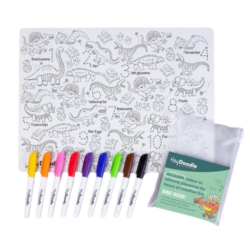 HeyDoodle Mata Silikonowa do Kolorowania A3 Cyferki - Dinozaury