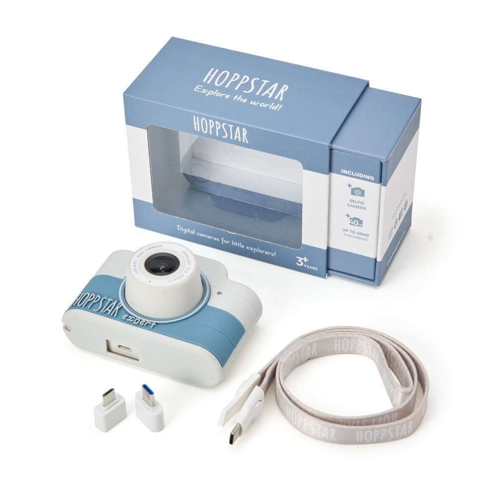 Aparat cyfrowy Expert Hoppstar to idealny aparat fotograficzny dla dzieci ze wszystkimi funkcjami potrzebnymi na co dzień: 40-megapikselowym obiektywem, dodatkowym aparatem do selfie, kartą pamięci 32 GB na 8000 zdjęć i funkcją kamery. Wyposażony w łatwe w obsłudze, intuicyjne menu oraz wymienne silikonowe etui chroniące przed uderzeniami i upadkami. Ten wyjątkowy aparat fotograficzny dla dzieci wykonany został z najwyższej jakości materiałów. Jest super-lekki i przyjemny w użyciu.
