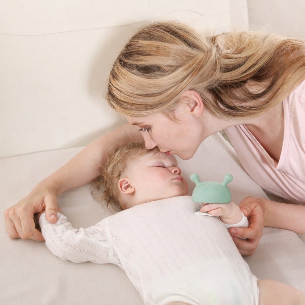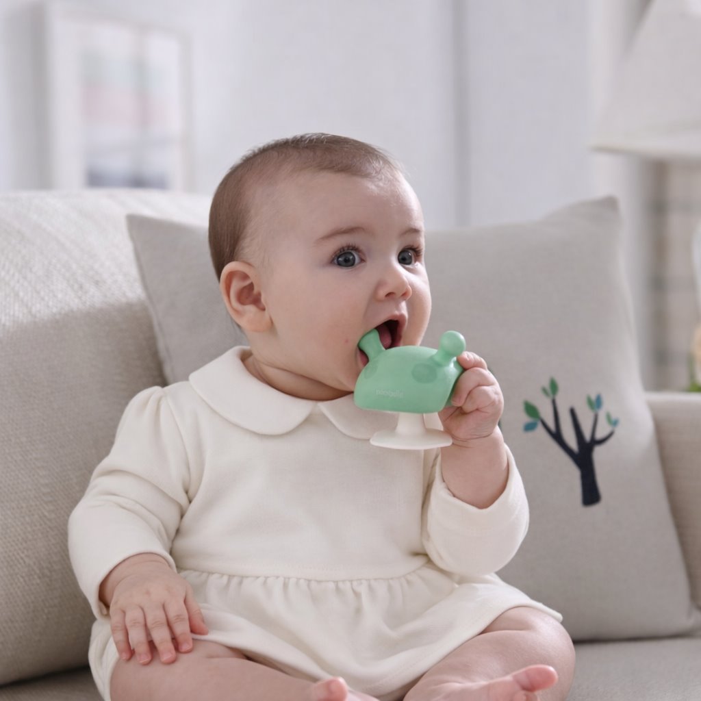 Mombella Gryzak Grzybek Mushroom to oryginalny silikonowy gryzak uspokajający dla niemowlaka, który zdobył zaufanie milionów mam na całym świecie.