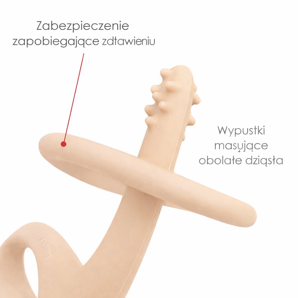 - miękki gryzak silikonowy z wypustkami masującymi dziąsła,
