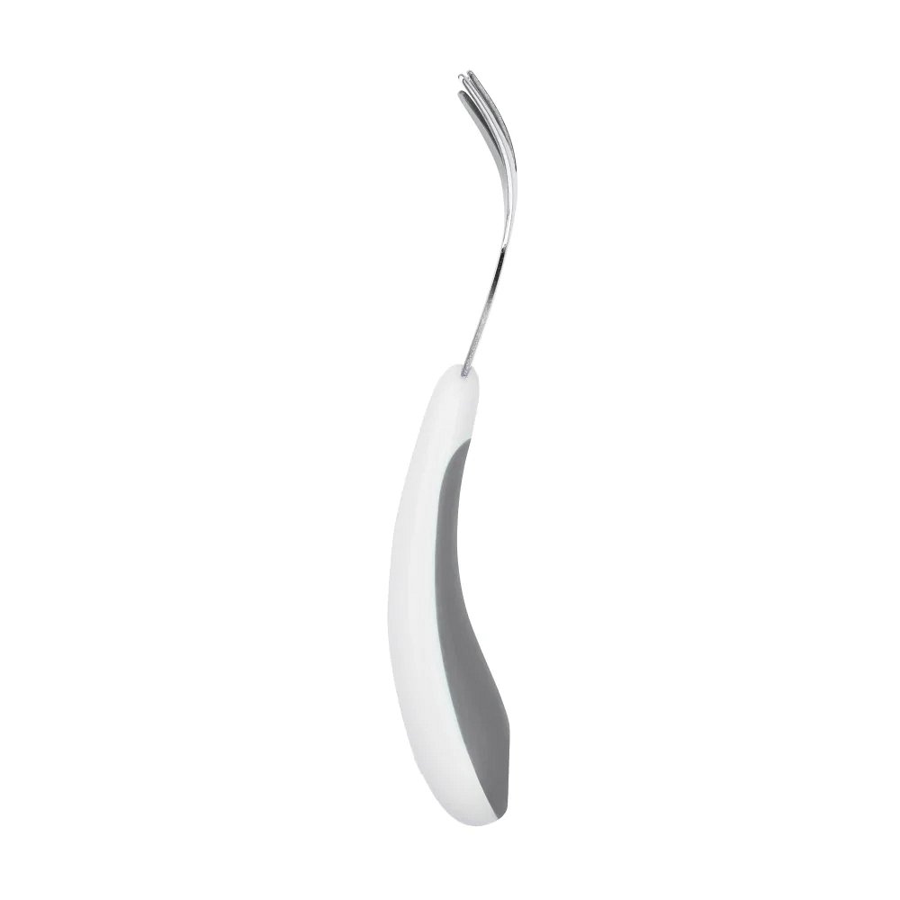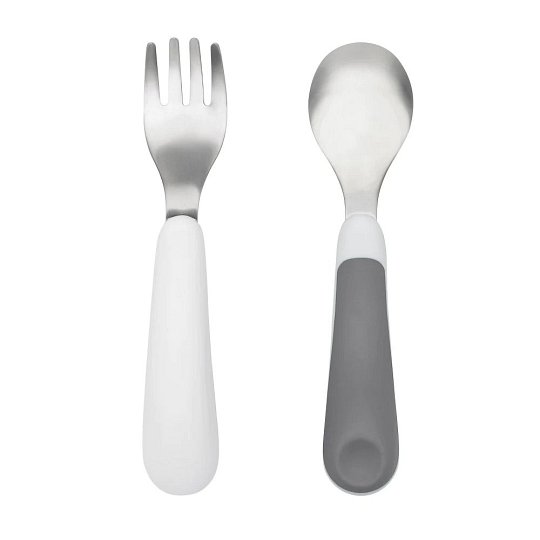 Zestaw sztućców z kolekcji OXO TOT składający się z łyżki oraz widelca to zestaw w sam raz dla malucha, który rozpoczyna naukę samodzielnego jedzenia. Specjalnie wyporfilowane kształty łyżki oraz widelca ułatawiają dziecku nabieranie odpowiednich porcji jedzenia. Miękkie, silikonowe uchwyty sprawiają, że sztućce nie wyślizgną się z rączki malucha. Wklęsły punkt pod spodem silikonowych uchwytów zapobiega zsuwania się sztućcy ze stołu.