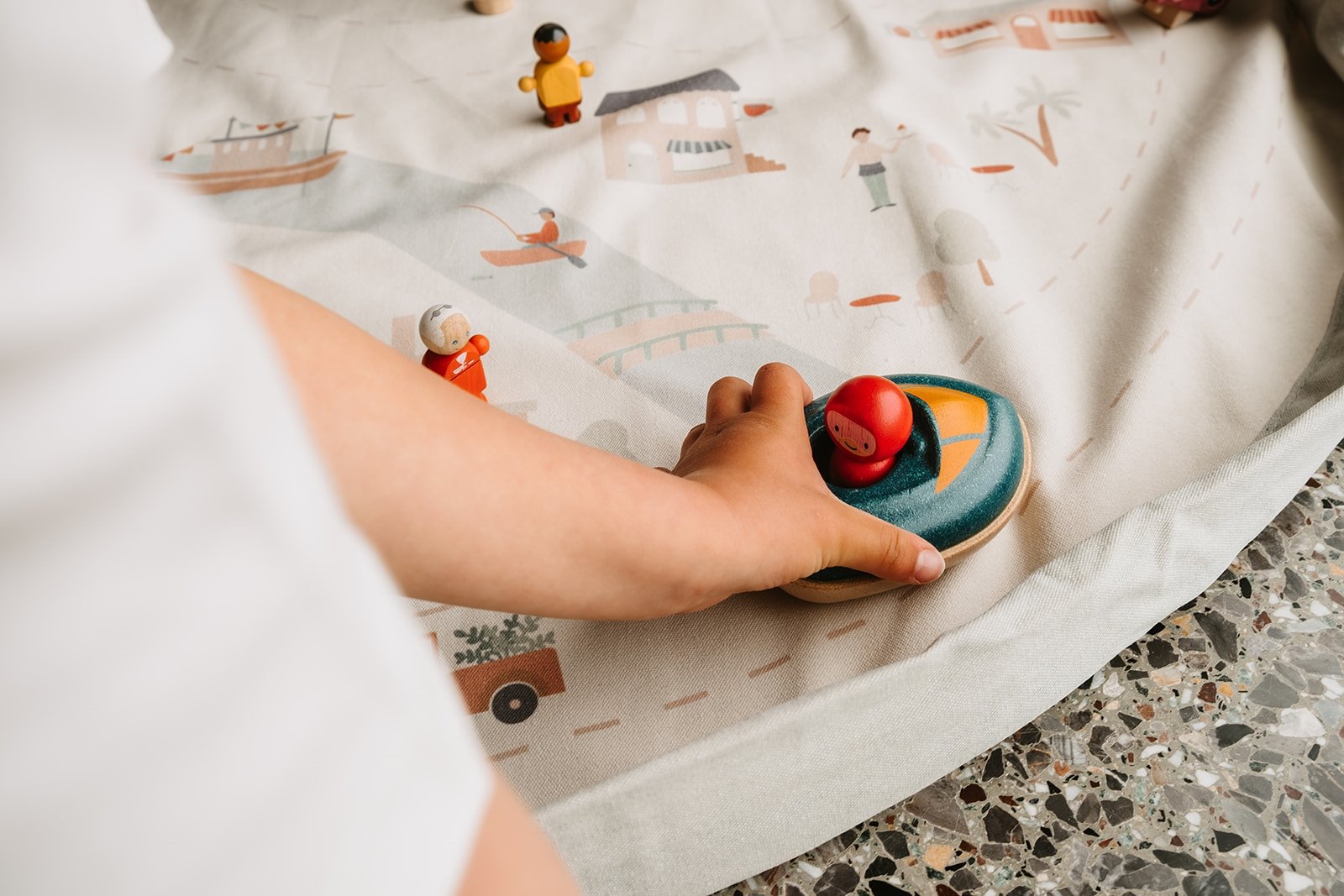 Mata do zabawy dla małych miłośników zabaw sytuacyjnych w miejskim stylu, którą można łatwo przekształcić w worek do przechowywania zabawek. Pozwól maluchowi na kreatywną zabawę, niech podąża miejskimi drogami zaglądając w różne ciekawe miejsca, a następnie zaparkuj jego samochodziki w worku Play&Go, gdzie poczekają na następną miejską wyprawę.