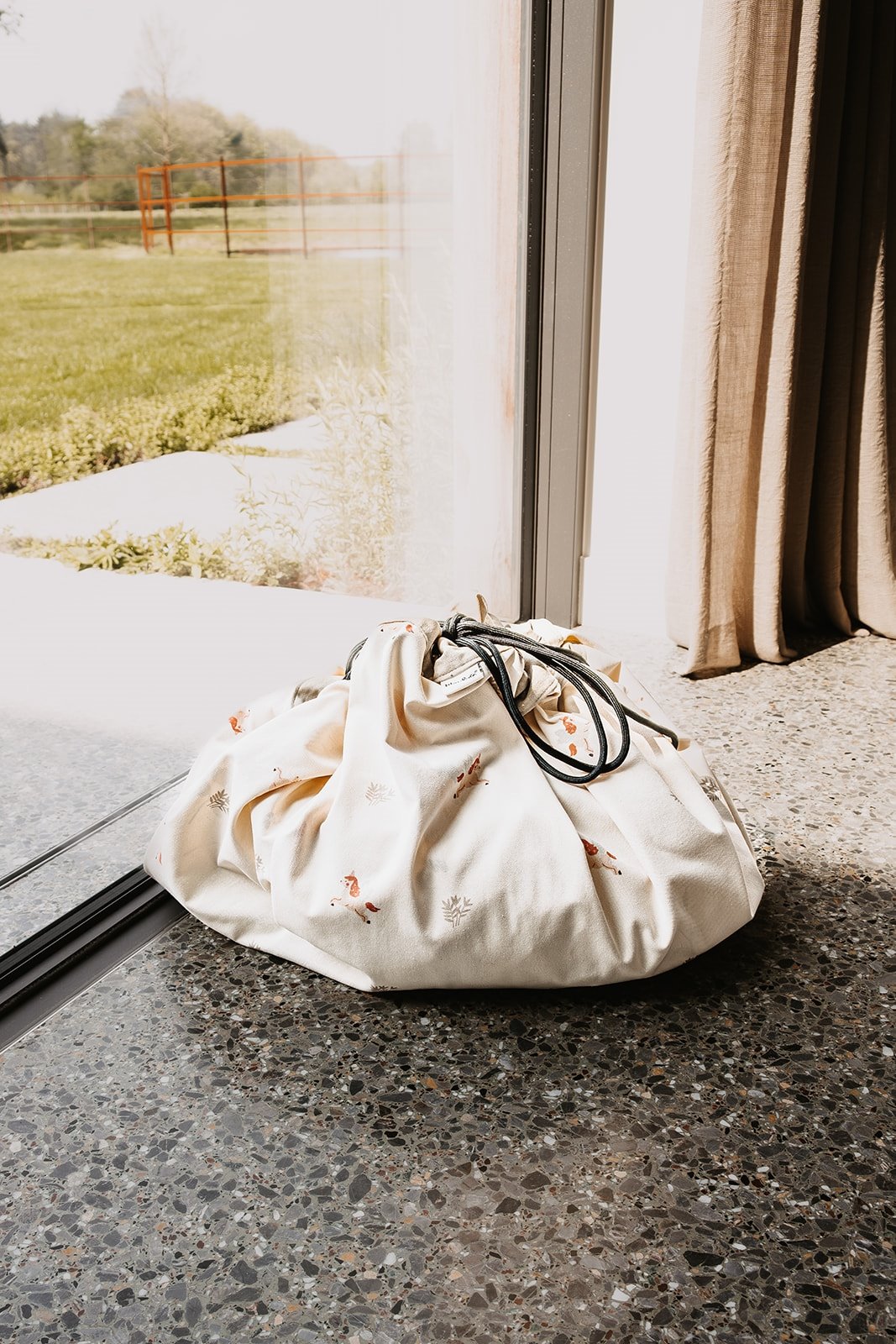 Oszczędność czasu, miejsca, mobilność, łatwość przechowywania, przestrzeń do kreatywnej, swobodnej zabawy, piękny design, jakość i bezpieczeństwo podczas zabawy – czy potrzebujesz więcej argumentów, by wybrać worek na zabawki i matę do zabawy Play&Go 2w1?