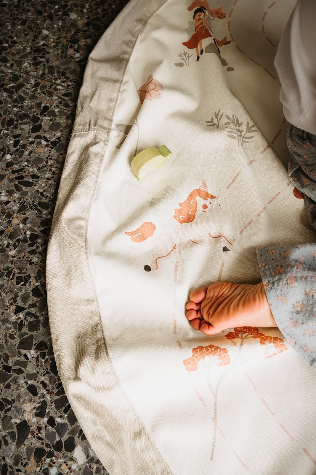 Mata do zabawy dla małych miłośników zabaw pełnych wyobraźni, którą można łatwo przekształcić w worek do przechowywania zabawek. Pozwól maluchowi na kreatywną zabawę, niech podąża uliczkami wśród wróżek i jednorożców, a następnie zaparkuj dziecięce zabawki w worku Play&Go, gdzie poczekają na następną magiczną wyprawę.