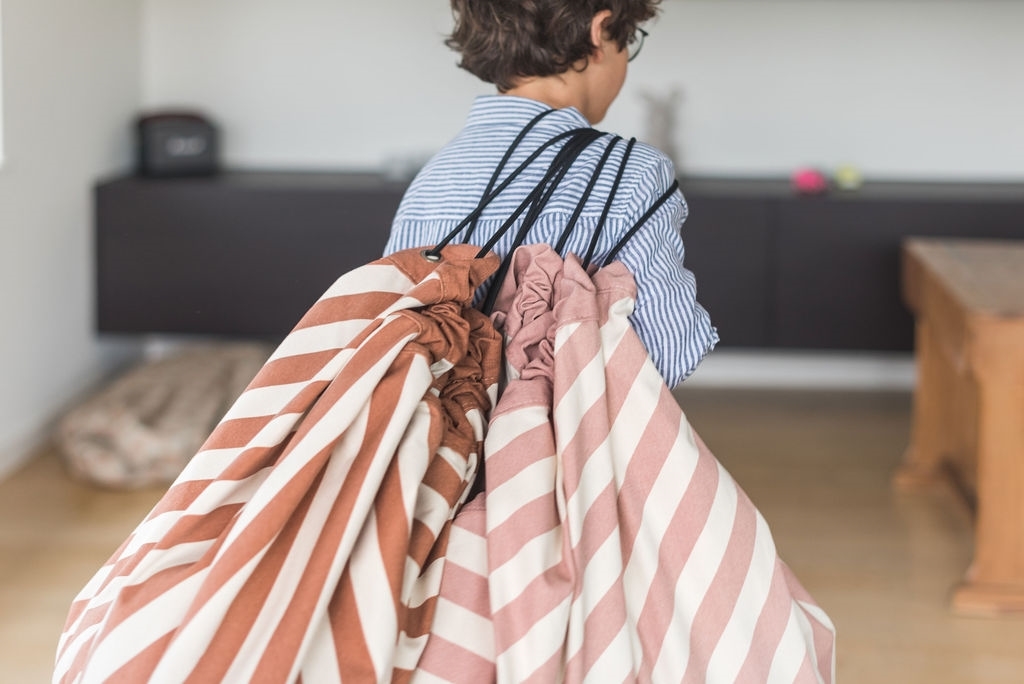 Sprzątanie i przechowywanie zabawek nigdy nie było tak praktyczne i łatwe, jak teraz! Wiedząc, że zabawki lubią się gubić na dnie kosza lub rozrzucone na podłodze znajdują się pod łóżkiem kilka tygodni później, marka Play&Go stworzyła wyjątkowy produkt, który całkowicie zmienia rodzicielskie zasady gry. To piękna mata do zabawy w modnym wzorze, który pasuje zarówno do dziecięcych, jak i dorosłych wnętrz. Maluchy i starszaki mogą rozrzucać lub układać na niej figurki, klocki, pluszaki, drogi, trasy kolejowe, naczynka do małych kuchni, gryzaki i inne dziecięce skarby, a po skończonej zabawie ten kreatywny nieład można sprzątnąć w zaledwie kilka sekund. Wystarczy ściągnąć sznurki, zamieniając matę do zabawy w worek do przechowywania zabawek. Proste! Na czas zabawy sznurki zabezpieczamy, więc dziecko może bawić się na macie bezpiecznie.