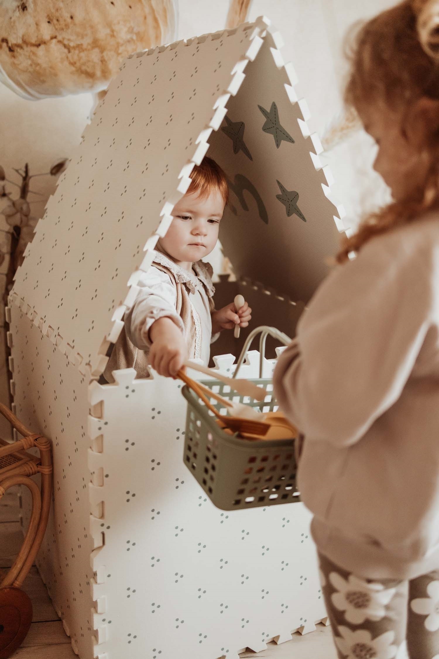 - dwustronna mata piankowa, pudełko na zabawki i domek do zabawy 3 w 1,