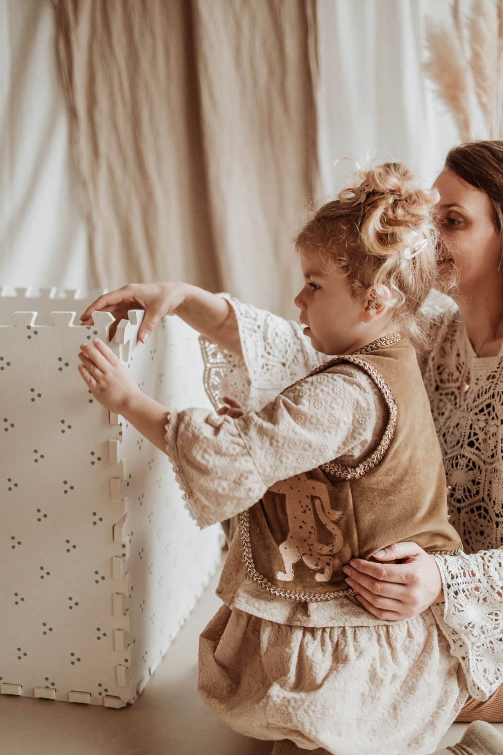 Piankowe puzzle łatwo się rozkładają i składają, ale nie rozchodzą się w trakcie zabawy, zapewniając maluchom bezpieczną przestrzeń. Wyposażone są w dodatkowe krawędzie, które puzzlową układankę pozwalają zamienić w elegancki antypoślizgowy dywanik, a ten za sprawą dwóch różnych wzorów sprawdzi się zarówno w pokoju dziecięcym, bawialni, jak i w salonie. Dodatkowo piankowe puzzle są lekkie, więc można je łatwo przenosić i rozkładać w różnych miejscach.