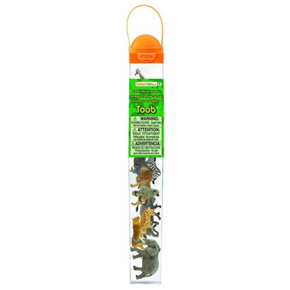 Zestaw 9 figurek przedstawiających zwierzęta Południowej Afryki, zapakowanych w praktyczną tubę