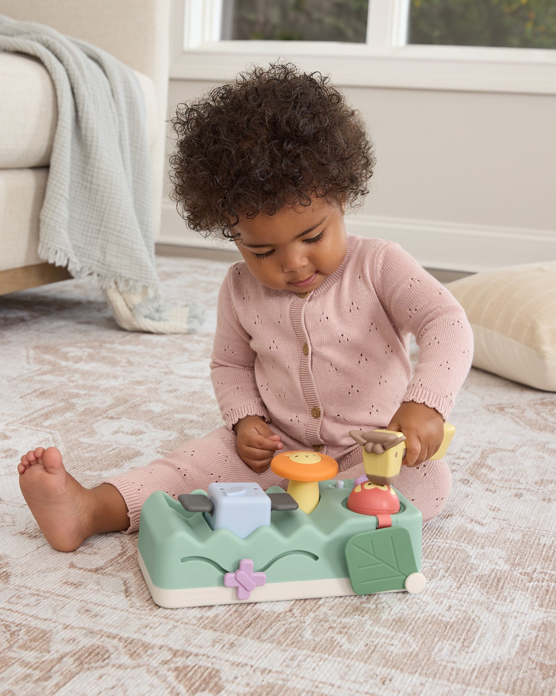 Zabawka do uderzania młotkiem, która jest jednocześnie zabawką muzyczną. Pomaga uczyć prostych kształtów, zależności przyczynowo-skutkowych, ćwiczy koordynację wzrokowo-ruchową i pozwala pokonywać kolejne etapy rozwoju podczas zabawy.