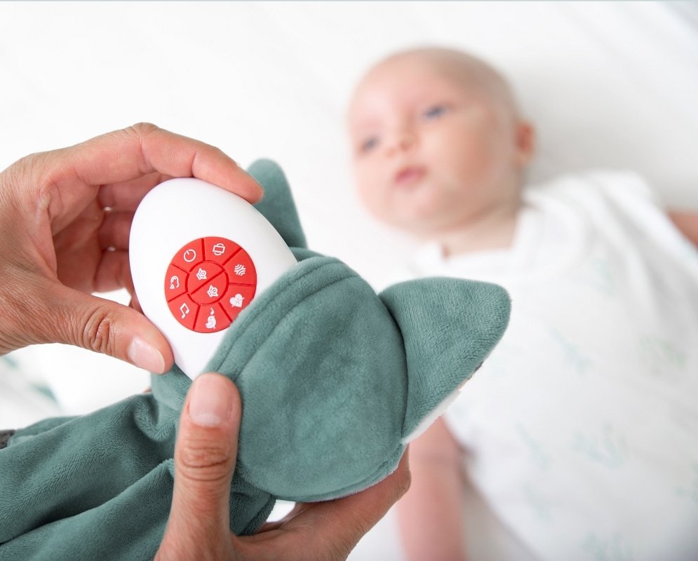 - 6 różnych dźwięków: bicie serca, biały szum, dźwięki natury, 3 kołysanki,