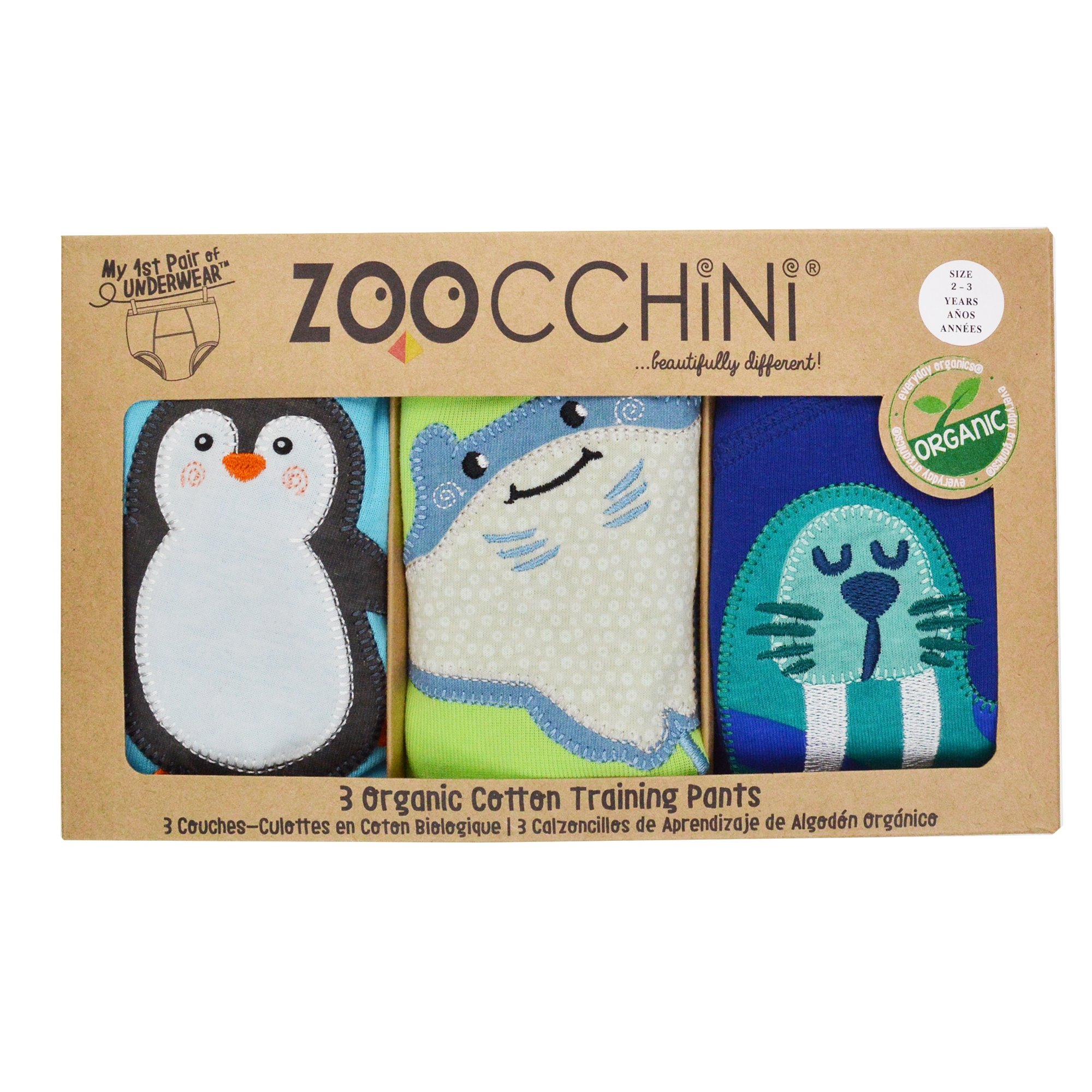 Majtki treningowe Zoocchini to rodzaj bielizny dziecięcej, która ułatwia proces odpieluchowania dziecka. Ich zewnętrzna warstwa wykonana jest w 100% z certyfikowanej bawełny organicznej, bezpiecznej i łagodnej dla skóry dziecka. Wewnątrz – tam, gdzie jest to najbardziej potrzebne - znajduje się podwójna warstwa frotte o właściwościach chłonnych. Z jednej strony chroni ona przed przeciekaniem, z drugiej – pozostając mokra, powoduje dyskomfort, który sprawia, że maluch odzwyczaja się od posikiwania i uczy korzystania z nocnika.